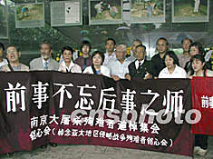 八月十五日,日本“銘心會”、神戶——南京心連心會、長崎日中友好希望之翼三個日本民間團體組織的訪中團,在侵華日軍南京大屠殺遇難同胞紀念館內的“萬人坑”前舉行悼念儀式。楊艷 攝