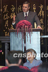 今天抵達(dá)上海的卡西亞諾夫中午出席了中方經(jīng)濟(jì)界人士舉行的午餐會,并發(fā)表講話。中國國務(wù)委員吳儀、俄羅斯聯(lián)邦政府副總理赫里斯堅科陪同出席午餐會。