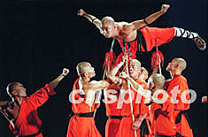 二十一日晚由中國對外演出公司和嵩山少林寺主辦的“少林雄風”演出在北京天橋劇場上演。少林武僧表演了十八般武藝,并以舞美展示了和尚的四季生活。童曙泉 攝
