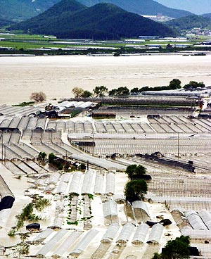 中新網(wǎng)北京9月2日消息:韓國遭受四十年來最強烈的臺風(fēng)吹襲,至少造成一百一十二人死亡或失蹤,初步估計損失達二十五億美元,九月底在釜山舉行亞運會的部分設(shè)施也受到損毀,總統(tǒng)金大中召開緊急內(nèi)閣會議,宣布各政府部門處于災(zāi)難戒備狀態(tài),并動員軍隊參與救災(zāi)工作。