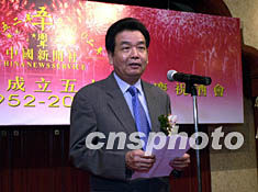 專程前來澳門出席酒會的中新社副社長兼總編輯郭招金在致辭時說,中國新聞社是向港澳同胞、臺灣同胞、華僑華人提供新聞、文化服務(wù)的通訊社,總社設(shè)在北京。經(jīng)過五十年的發(fā)展,中新社已建立起比較完整的新聞采集體系,在中國內(nèi)地的二十五個省、自治區(qū)、直轄市設(shè)有五十六個分社、支社、記者站。在香港、澳門特別行政區(qū),在美國、澳大利亞、日本、法國、泰國建有分支機構(gòu)。現(xiàn)在中新社每天播發(fā)新聞電訊稿一百條,傳真圖片三十張。中國新聞網(wǎng)每天更新新聞三、四百條,中國新聞圖片網(wǎng)每天更新新聞圖片一百幅。中新社還辦有《新聞周刊》、《華聲視點》、《中國經(jīng)濟周刊》、《中華文摘》、《時代傳媒》等刊物以及制作影視節(jié)目的影視部。每天向海外幾十家報紙?zhí)峁⿲8搴椭谱魇邆報紙版面。