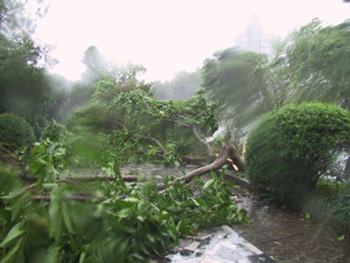 盡管離“森拉克”登陸還有2、3個小時左右,但臺風的影響已給溫州造成部分破壞。(董晶亮)