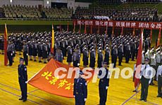 北京警方九月九日舉行保衛“十六大”誓師大會并莊嚴宣誓。作者:任海霞