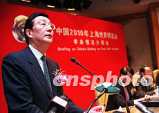 十二日晚,中國(guó)2010年上海世界博覽會(huì)申辦情況介紹會(huì)在北京舉行,上海市市長(zhǎng)陳良宇稱對(duì)成功申辦2010年世博會(huì)信心十足。作者:盛佳鵬