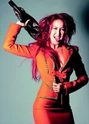 中新網9月24日電 李玟最近由Versace總裁兼首席設計師Donatella Versace欽點,出動價值逾百萬港幣的秋冬新裝、珠寶首飾和手表,給李玟拍攝WFD國際服裝動態--2002九月號的封面。李玟穿上低胸透視裝,艷麗又性感,舉手投足充分展現巨星的魅力。