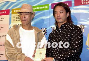 香港作曲家及作詞家協(xié)會(huì)(CASH)9月25日舉行“2002金帆音樂獎(jiǎng)”記者會(huì),公布各音樂獎(jiǎng)項(xiàng)入圍名單,歌星陳小春(左)代表協(xié)會(huì)揭曉“最佳流行音樂”入圍名單,其中已向幕后發(fā)展的Eric Kwok的作品成功入圍。中新社圖鄧慶樂攝