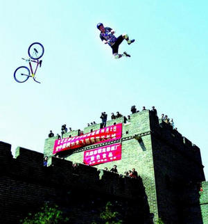 昨天中午12點左右,助威的現場歌舞表演結束后,在場的所有觀眾都集中在了黃崖正關廣場的東側,所有的目光都注視在飛越挑戰者身上。大約10分鐘后,王會海第一個沖下高35米、長76米的下滑跑道,剎那間人車一同飛過長城,并安全落地。隨后身材魁梧的王家雄在總指揮的一聲令下后也騎著自行車沖下跑道,然而就在越過長城的時刻,王家雄與自行車分離。在記者的鏡頭前,年僅30歲的王家雄留下了最后的身影。他的身體在長城上劃過時,自行車下墜撞到長城的頂沿并彈過城墻落在地面緩沖區的防護墊上,而王家雄卻飛向緩沖區域之外的綠化草叢中,當即昏迷不醒。