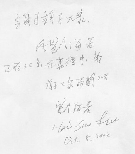 進(jìn)入10月以來,海若已能夠用文字表達(dá)自己的感情。在一張紙上,海若寫道:“謝謝大家。我是劉海若,正在北京康復(fù)中。謝謝大家的關(guān)心。”并用中英文寫下自己的名字。在另一張紙上,海若寫道:“很想念大家,希望大家幸福快樂。我很快回到工作崗位和大家見面。聽說小莉要生寶寶了,祝她們健康幸福。”