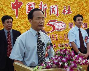 中新社總編輯郭招金在慶典上致辭。他說,中新社是中國兩家通訊社之一,成立于一九五二年九月十四日,主要為港澳同胞、臺灣同胞、華人華僑服務。目前,中新社在中國內地的二十五個省、自治區(qū)、直轄市設有五十六個分社、支社、記者站。在香港、澳門特別行政區(qū),在美國、澳大利亞、日本、法國、泰國建有分支機構。現在中新社每天播發(fā)新聞電訊稿一百余條,傳真圖片三十多張,中國新聞網每天更新新聞四五百條,中國新聞圖片網每天更新新聞圖片一百多幅,向海外幾十家報紙?zhí)峁⿲8搴椭谱魇邆報紙版面。
