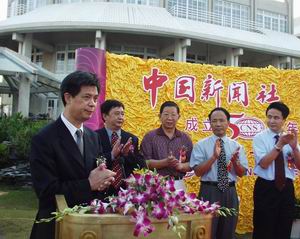 中國新聞社成立五十周年海南慶典大會10月9日在海口隆重舉行。中共海南省委副書記羅保銘、中共海南省委常委、海南省委宣傳部部長周文彰、海南省人大副主任王信田、海南省直機關各部門、海南省各市縣、駐瓊新聞單位和省政府內新聞媒體的負責人、海南社會各界人士二百多人出席了慶典大會。中國新聞社總編輯郭招金、中國新聞社編委、專稿部主任戴亞平、中國新聞社辦公室主任宋甦等專程從北京趕來海口參加慶祝大會。中新社記者 王辛莉 攝