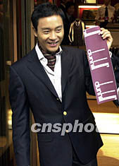 香港演藝界大牌明星“哥哥”張國榮,10月10日出席全世界最著名的英國男裝品牌Dunhill香港旗艦店開業儀式時,身著價格昂貴的Dunhill西服亮相。任晨鳴 攝