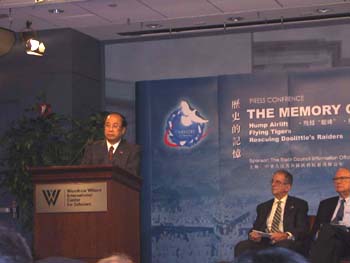 中國國務院新聞辦主任趙啟正主持了今晚的開幕式。他說:今天我們共同回憶當年中美兩國在反法西斯戰爭中極其壯烈的歷史和兩國人民結下的深厚友誼。有時歷史會沾滿灰塵,需要去揩拭,讓它重新發光。當年故事的主人公年事已高,我希望把這段歷史告訴年輕人,這是我們舉辦這次活動的目的。