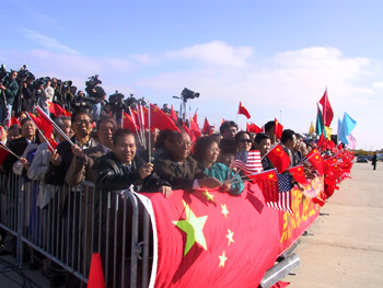 國務院副總理錢其琛及夫人周寒瓊、中央政策研究室主任滕文生、外交部副部長李肇星、中央政策研究室副主任王滬寧、中央辦公廳副主任由喜貴、外經貿部副部長馬秀紅和國臺辦副主任周明偉等江澤民主席訪美的陪同人員同機抵達芝加哥。國家發展計劃委員會主任曾培炎已先期抵達。中國駐美大使楊潔篪、中國常駐聯合國代表王英凡到機場迎接江澤民主席一行。(完)