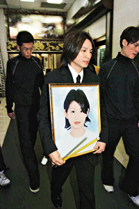 中新網10月24日電 于本月初在家中意外死亡的葉世榮未婚妻許韻珊,昨日在世界殯儀館設靈,今日出殯,其遺體將葬于將軍澳華人永遠墳場。昨日靈堂門外寫著“葉府治喪”,世榮送給Cynthia的花圈亦以“愛妻”為名,他更細心地為Cynthia戴上結婚戒指,以“丈夫”身份送“愛妻”最后一程。