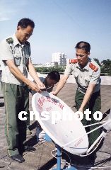 為讓部隊(duì)官兵能夠高質(zhì)量地收看贊頌改革開放偉大成就和十六大的有關(guān)報(bào)道,武警海南總隊(duì)組織文化站的官兵下基層對(duì)電視接收設(shè)備進(jìn)行檢修,并給遠(yuǎn)離市區(qū)的單位安裝了衛(wèi)星接收天線。周宏偉 攝