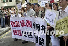 11月2日,“反色情暴力資訊運動”十八個成員團體約三十多人到《東周刊》雜志辦事處進行抗議,,強烈譴責《東周刊》剛出版的(第521期)以“字母女星被虐裸照曝光”為封面及專題,踐踏受害人尊嚴。鄧慶樂 攝