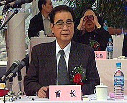 國務院副總理吳邦國宣布導流明渠截流合龍成功后,全國人大委員長李鵬發表了重要講話。