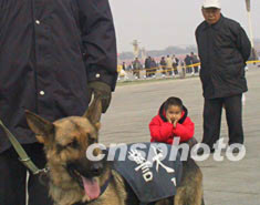 北京天安門廣場近期增添警犬進行巡邏守衛,執勤的警犬也成了小游客眼中的新景。作者:廖文靜