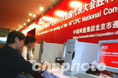 一名前來采訪中國共產(chǎn)黨第十六次全國代表大會的記者六日在北京梅地亞中心查閱中共十六大專題網(wǎng)站資料。即將召開的中國共產(chǎn)黨第十六次全國代表大會引起中外媒體的廣泛關(guān)注。作者:毛建軍