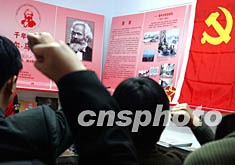 中共十六大八日在北京召開之時,北京大學和首都經貿大學的學生在是日開放的馬克思展廳舉起拳頭,宣誓入黨。作者:賈國榮