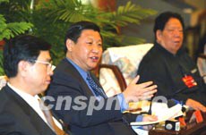 圖為十六大代表、浙江省代省長習近平在會上發(fā)言。