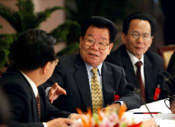 李鵬九日參加重慶代表團分組會 中新社記者 毛建軍 攝