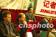 中國共產黨第十六次全國代表大會十日繼續舉行分組會,部分會場向中外記者開放采訪。圖為外國記者在湖北代表團會場專心聽會。作者:毛建軍