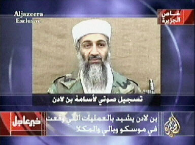 11月12日,一家阿拉伯衛星電視臺播出了一個據稱是“基地”組織領袖本·拉登的錄音資料,在這個錄音中,本·拉登對上月發生的針對西方國家的攻擊行動表示了稱贊。