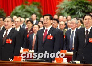 中國共產黨第十六次全國代表大會十四日上午在北京人民大會堂閉幕。作者:毛建軍