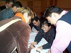 據(jù)新聞中心的一位工作人員介紹,由于新常委與記者們見面的場地面積有限,而此次參加十六大報道工作的中外記者人數(shù)又太多,所以只能通過發(fā)放請柬的方式控制參加見面會的記者人數(shù)。大會新聞中心會根據(jù)每家新聞機(jī)構(gòu)規(guī)模的大小,相應(yīng)地發(fā)放一至數(shù)張請柬。(劉志剛)