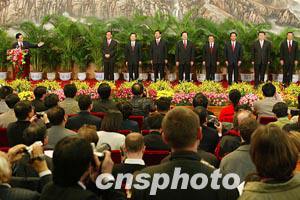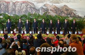 組圖:中共中央政治局九常委與記者見面