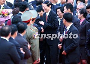 中國國務(wù)院總理朱镕基和夫人勞安,11月18日下午乘坐專機(jī)抵達(dá)香港參加“第十六屆世界會計師大會”。
