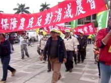 中新網11月23日電近13萬農漁民今日下午走上臺北街頭,表達了他們對“財政部”藉改革基層金融之名欲消滅農漁會的不滿之情,下午4時40分農漁會自救會宣布游行結束。