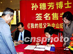 孫中山先生之嫡孫女、孫科的女兒孫穗芳博士,二十四日在廣州廣東省立中山圖書(shū)館舉行簽名售書(shū)活動(dòng),推出《我的祖父孫中山先生紀(jì)念集》。該書(shū)共收錄400多張歷史照片和200多份墨寶,將孫中山先生一生為救中國(guó)、不停奔走、呼吁革命的真實(shí)過(guò)程重新展現(xiàn)在讀者眼前。作者:羅仰明