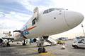 機場工作人員在檢查后用手勢表明波音757客機沒有受損