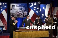 美國第10艘尼米茲級航空母艦--CVN 77以第41任總統喬治·布什(老布什)名字命名。圖為12月9日,喬治·布什在弗吉尼亞州阿靈頓參觀CVN 77模型。Ic/cnsphoto 攝
