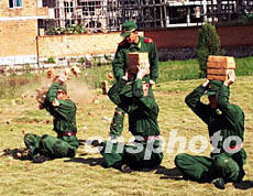 福建連江縣公安、邊防、消防、內衛、巡警、交警以及警犬隊等各警種的百余名選手十二月中旬舉行反恐技能競賽。圖為連江邊防大隊官兵展示硬氣功技能。作者:卞鄭