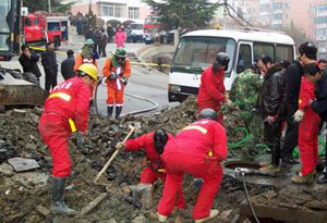 煤氣工人在緊急搶修 大連晚報 李傳報 攝