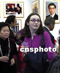 紐約中國和平統一促進會十二月十五日在紐約舉行中共十六大成果圖片展,用一百幅圖片介紹中國的發展變化,引起美國人極大的興趣。趙海燕 攝