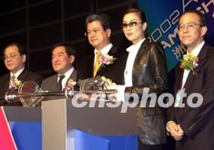 歌影紅星鄭秀文12月21日在香港出席“2002年亞洲游戲展”,與多家著名的游戲生產商代表一同主持開幕典禮。中新社傳真 鄧慶樂 攝