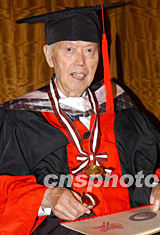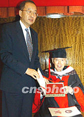 圖:劉澤彭為華僑大學(xué)名譽(yù)博士頒學(xué)位證書(shū)