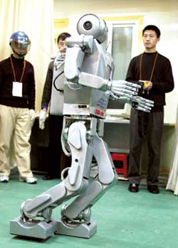 中新網(wǎng)12月29日電 隨著幾個太極拳動作行云流水般的完成,昨天上午,我國首個仿人機(jī)器人在北京理工大學(xué)通過了國家863項目組的驗收。驗收專家認(rèn)為該機(jī)器人項目在系統(tǒng)集成、步態(tài)規(guī)劃和控制系統(tǒng)等方面實現(xiàn)了重大突破,標(biāo)志著我國仿人機(jī)器人研究已經(jīng)跨入世界先進(jìn)行列。