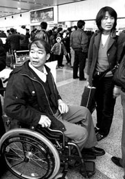 昨天下午5點40分。首都國際機場國際到港出口處。在推著大包小包行李的人流中,一個頭發稀疏的中年男子坐在輪椅上被緩緩推出。他就是在2002年4月12日以色列耶路撒冷爆炸案中受傷的中國勞工林金謀。