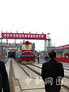 在抵達海南島南港碼頭后,渡海火車將開進海口火車站。