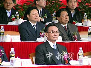 今天上午十時三十分,粵海鐵路火車輪渡開通慶典大會舉行,中央政治局常委、國務院副總理吳邦國出席慶典儀式。中新社記者 關向東 攝