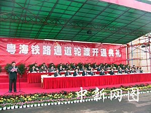今天上午,中國鐵道部、廣東省和海南省舉行了隆重的通車儀式。中共中央政治局常委、國務院副總理吳邦國以及鐵道部、交通部、經貿委、廣東、海南的領導在海口碼頭等候輪渡靠岸,并頻頻向火車輪渡招手。