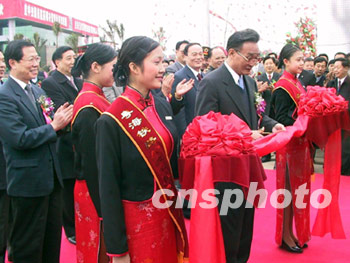 今天上午十時,一艘白色巨輪緩緩駛向北港港池,十時十分,巨輪穩穩停靠在北港停泊位,十時二十一分,粵海鐵一號上的鐵軌與陸地棧橋鐵軌成功對接,十時三十分,在機車牽引下,第一節渡海火車車箱開上海口南港棧橋。十點四十六分,中共中央政治局常委、國務院副總理吳邦國在棧橋火車前為粵海鐵路正式開通剪彩。