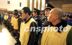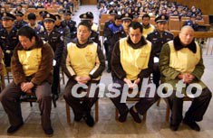 陳文樹(右一)、王成(右二)、白玉泉、金際明等四名被告人被判處無期徒刑,剝奪政治權利終身,并處沒收個人全部財產;涉案其他三十八名被告人分別被判處二至十五年有期徒刑,并處罰金。作者:任海霞