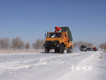 返回艙從內蒙古草原沿公路運往北京(1)孫陽 攝