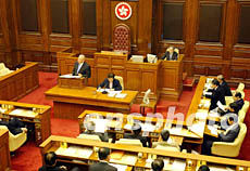 香港立法會議員1月9日出席立法會會議,就行政長官董建華的施政報告提出問題。洪少葵 攝